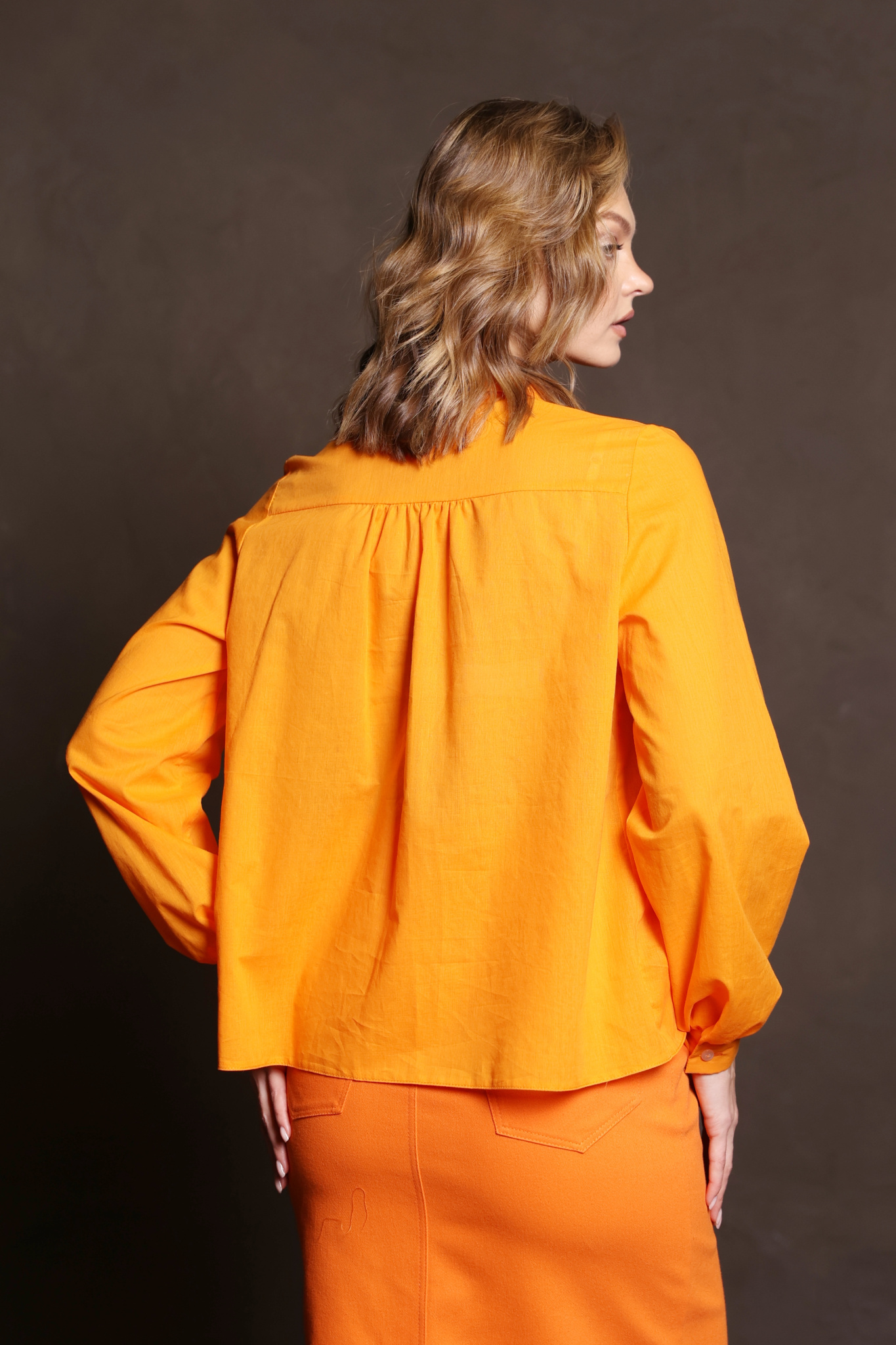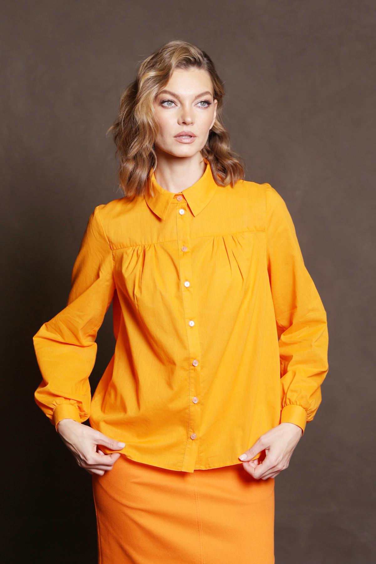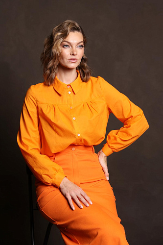 Рубашка из хлопка на кокетке с отложным воротом . Втачной рукав на манжете.