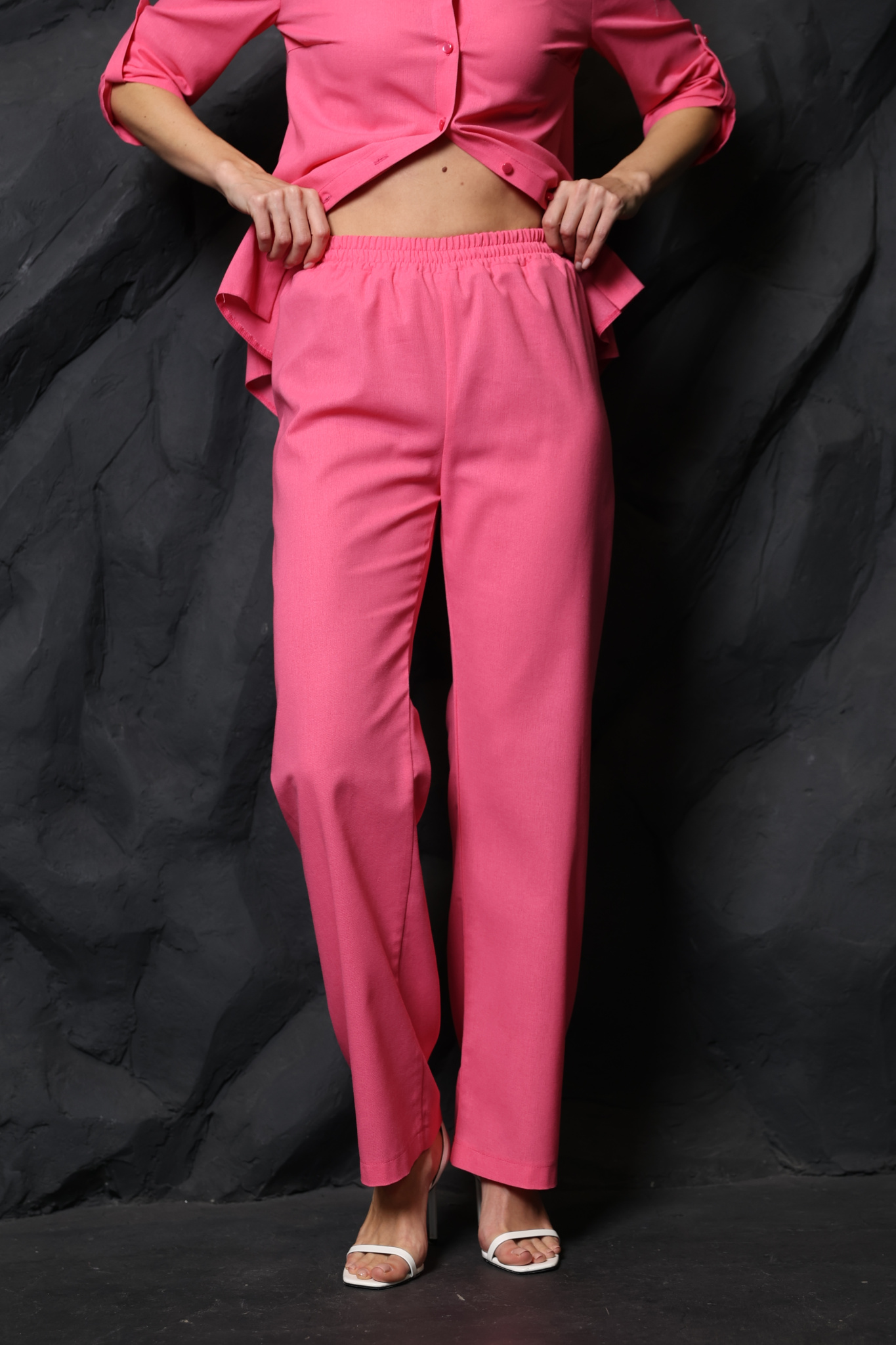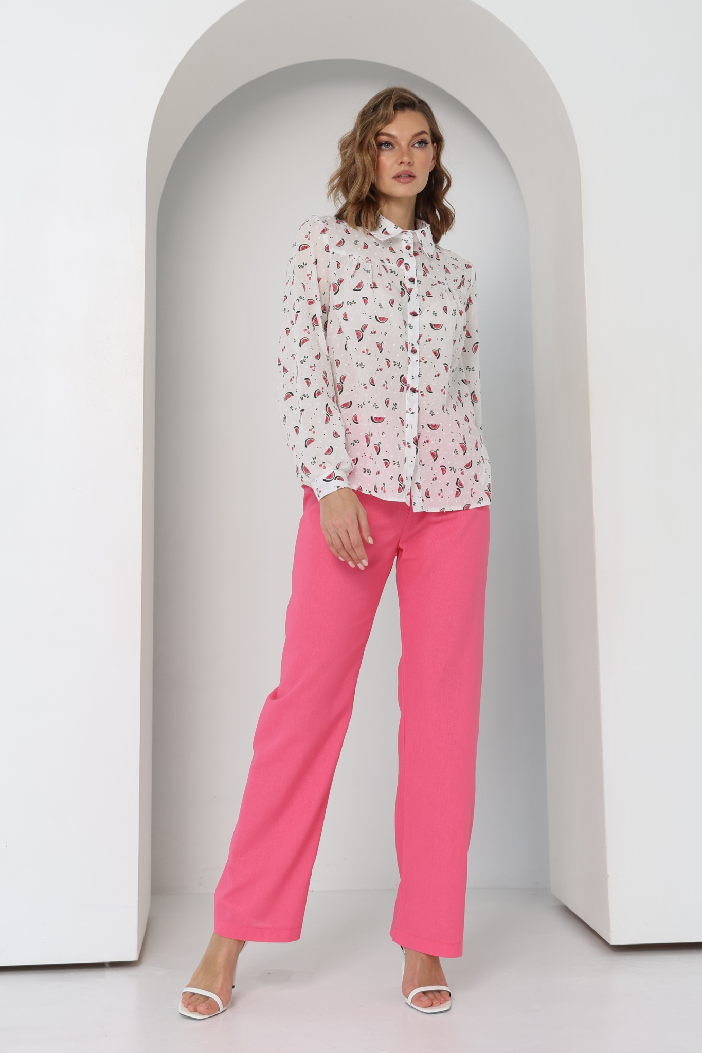 Брюки прямые, свободного кроя в пижамном стиле. С резинкой на поясе.