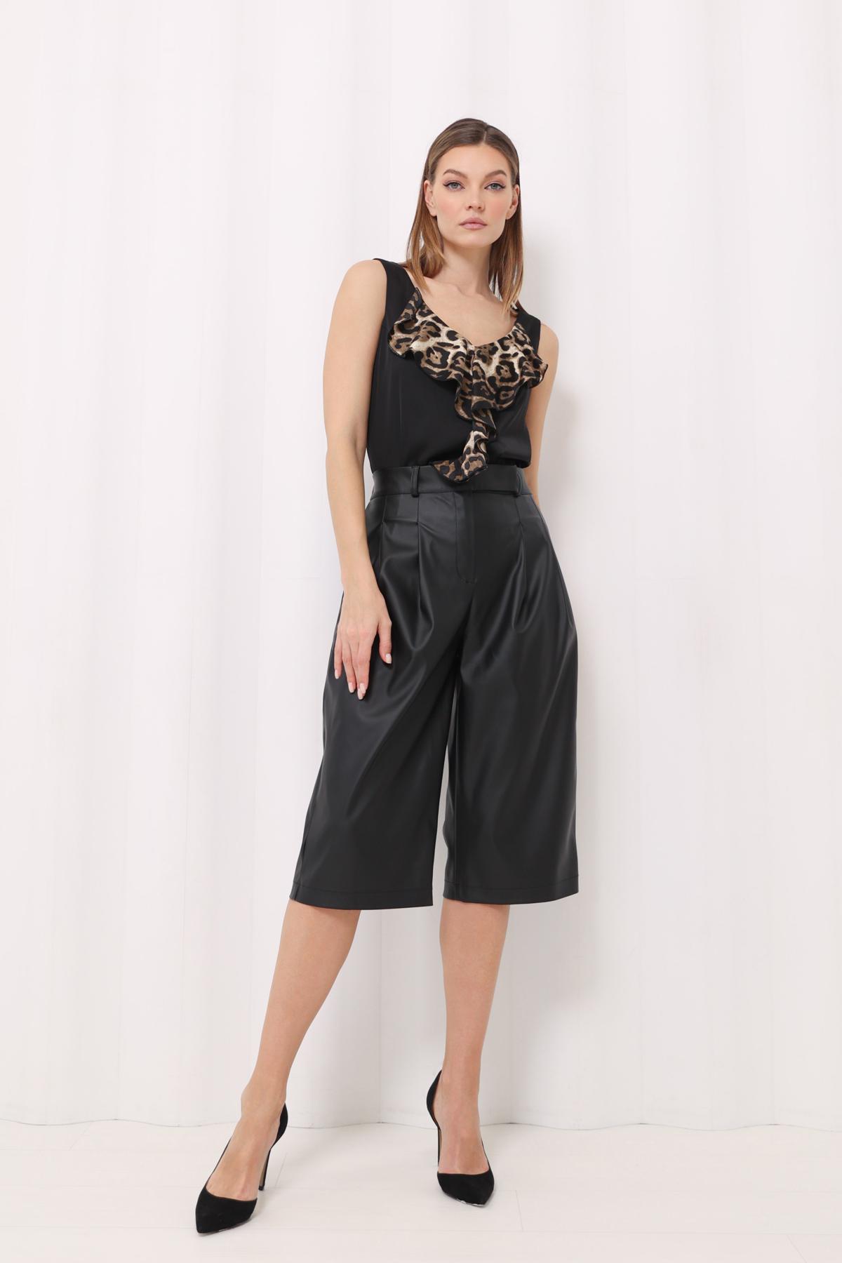 Топ из искусственного шёлка с контрастным воланом по линии переда.