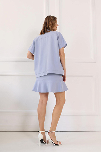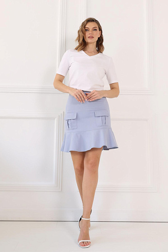 Юбка мини с воланом по низу. По переду накладные карманы с клапанами. Застежка-молния по спинке. Модель выполнена без подкладки.
