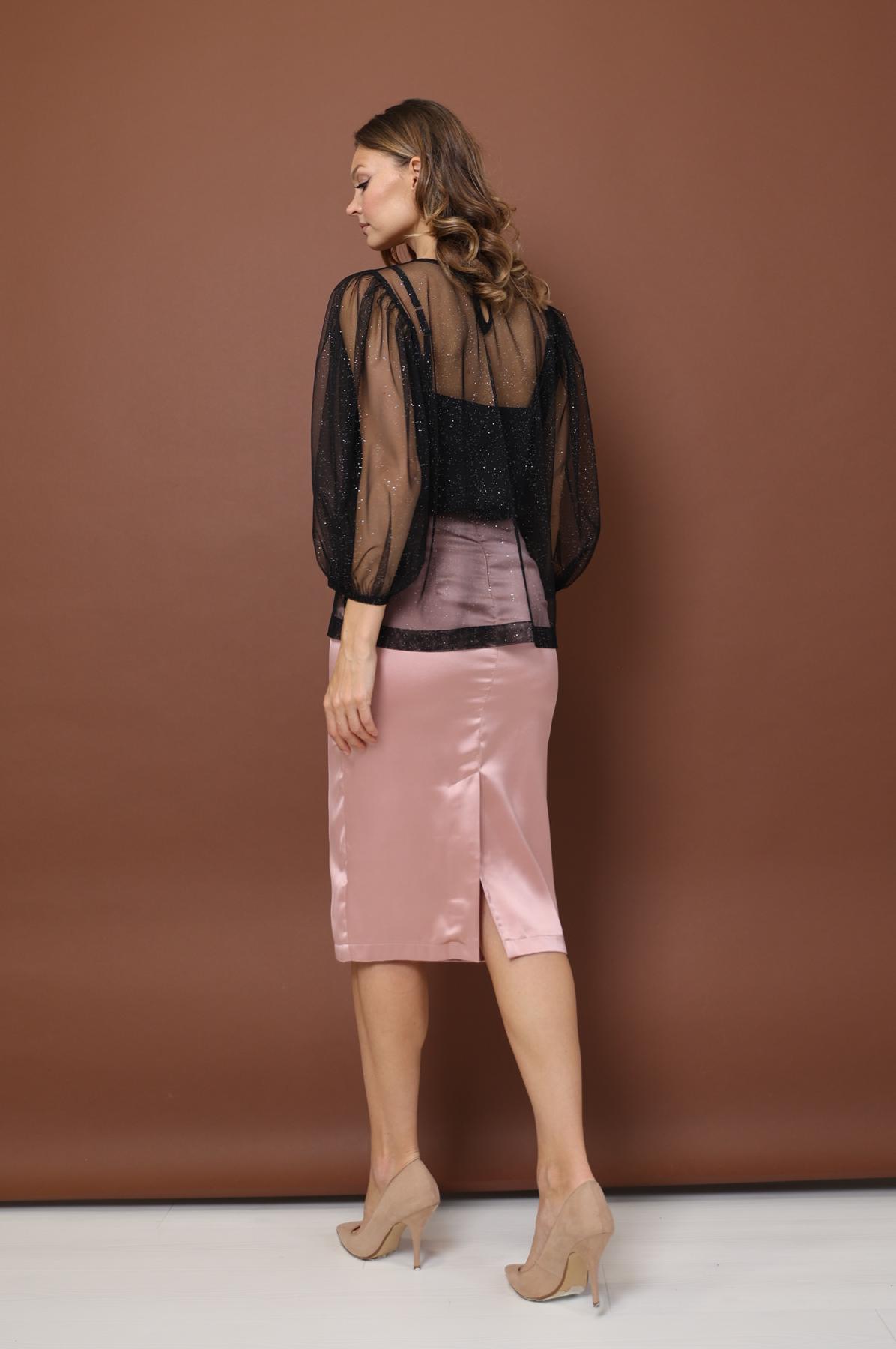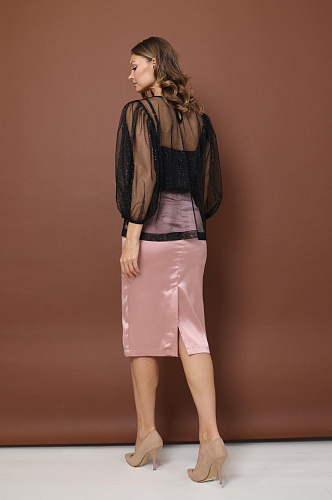 • Юбка-карандаш миди со шлицей и застежкой на потайную молнию в среднем шве спинки.  Юбка выполнена  без подкладки.