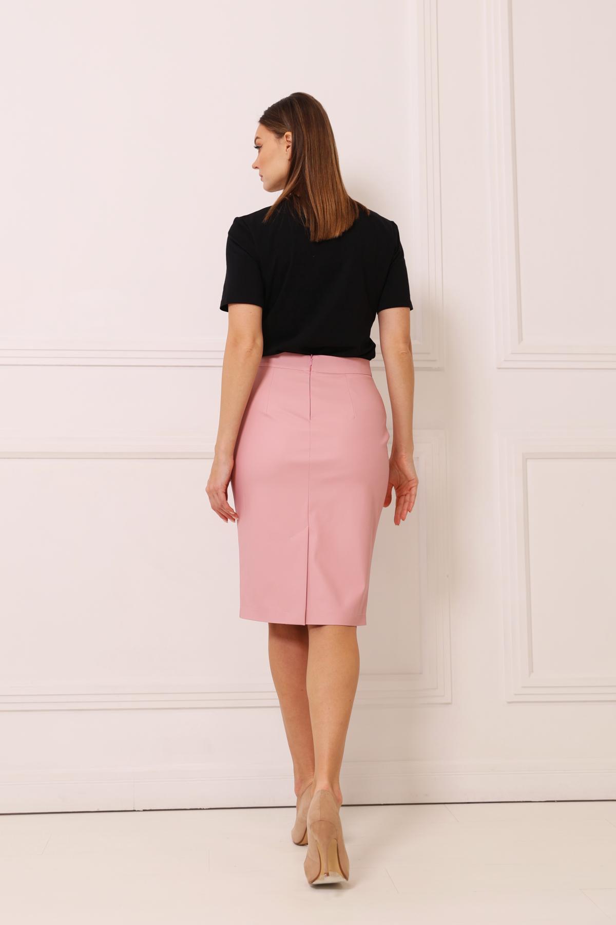 Юбка-карандаш с втачным поясом и шлицей. Потайная молния сзади. Модель выполнена без подкладки.